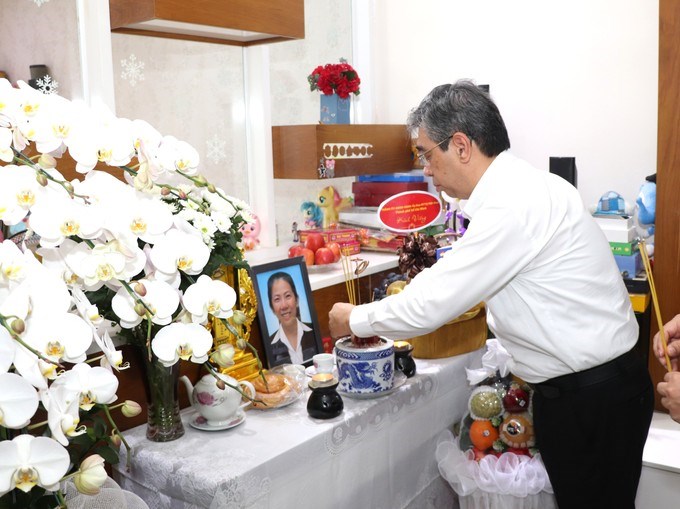 Đồng chí Nguyễn Phước Lộc thắp nén nhang lên bàn thờ bà Huỳnh Thị Anh ĐàoThay mặt lãnh đạo thành phố, đồng chí Nguyễn Phước Lộc chia sẻ cùng mất mát quá lớn của gia đình bà Huỳnh Thị Anh Đào và mong gia đình sớm vượt qua nỗi đau buồn. Đồng chí cũng gửi gắm địa phương quan tâm thăm hỏi gia đình và chăm lo tết đến 2 con còn nhỏ của bà Anh Đào.