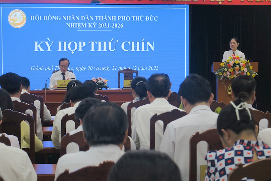 Báo cáo kết quả tại kỳ họp, Phó Chủ tịch HĐND TP Thủ Đức Thái Mỹ Diện cho biết, trong năm 2023, Thường trực HĐND TP Thủ Đức đã chủ động trong công tác chỉ đạo xây dựng và ban hành Đề án về kiện toàn tổ chức bộ máy của Thường trực và các Ban HĐND TP trong điều kiện thực hiện thí điểm một số cơ chế đặc thù phát triển TP Thủ Đức theo Nghị quyết số 98/2023/QH13 của Quốc hội.