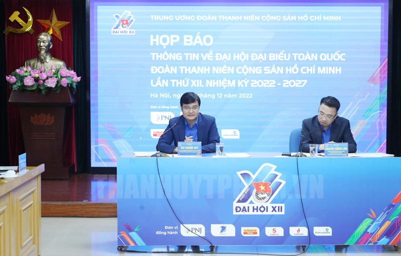 Đồng chí Bùi Quang Huy chủ trì họp báo(Thanhuytphcm.vn) - Ngày 5/12, tại Hà Nội, các đồng chí: Bùi Quang Huy, Bí thư Thứ nhất Ban chấp hành Trung ương Đoàn, Trưởng Ban Tổ chức đại hội Đại hội đại biểu toàn quốc Đoàn TNCS Hồ Chí Minh lần thứ XII; Nguyễn Tường Lâm, Bí thư Ban chấp hành Trung ương Đoàn, Trưởng Tiểu ban Tuyên truyền đại hội, đã chủ trì họp báo thông tin về việc tổ chức Đại hội Đại biểu toàn quốc Đoàn TNCS Hồ Chí Minh lần thứ XII, nhiệm kỳ 2022-2027.