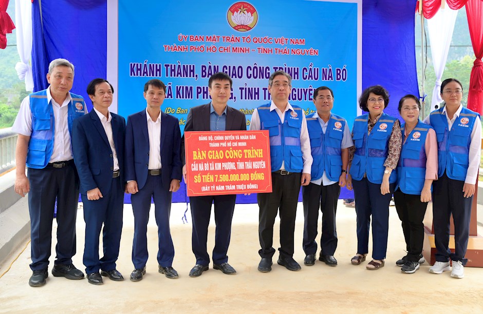 (Ảnh: SGGP)Ngày 17/11, trong khuôn khổ chuyến công tác hỗ trợ các tỉnh phía Bắc khắc phục hậu quả bão lũ, đồng chí Nguyễn Phước Lộc, Phó Bí thư Thành ủy, Chủ tịch Ủy ban MTTQ Việt Nam TPHCM cùng đoàn công tác đã đến xã Kim Phượng, tỉnh Thái Nguyên để bàn giao và khánh thành công trình cầu Nà Bó – cây cầu do TPHCM hỗ trợ xây dựng với kinh phí 7,5 tỷ đồng.