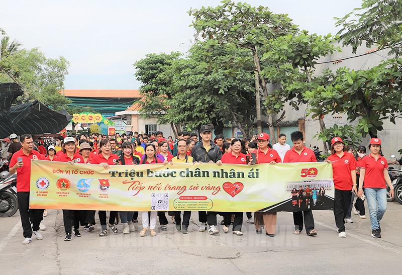 Ngay sau Lễ phát động, hơn 400 vận động viên là chiến sĩ, đoàn viên, thanh niên, cán bộ, hội viên, tình nguyện viên và Nhân dân trên địa bàn huyện đã cùng cài đặt ứng dụng vRace, đăng ký tham gia Chiến dịch “Triệu bước chân nhân ái - Tiếp nối trang sử vàng” và thực hiện lộ trình đi bộ dài 1km.