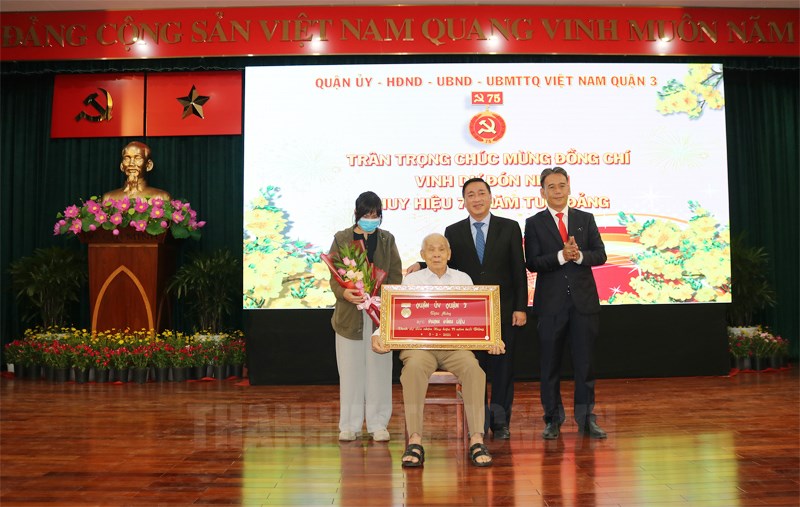 Dịp này, Đảng bộ Quận 3 có 111 đồng chí vinh dự đón nhận Huy hiệu 75, 65, 60, 55, 50, 45, 40 và 30 năm tuổi Đảng.