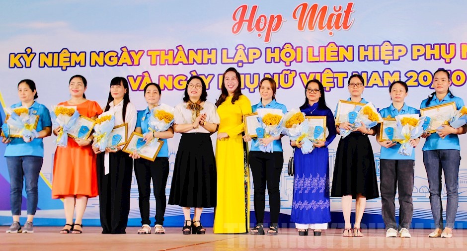 Đồng chí Vũ Thế Vân trao Giấy khen và hoa đến cán bộ nữ công tiêu biểu giai đoạn 2018 - 2023.(Thanhuytphcm.vn) - Nhân kỷ niệm 93 năm ngày thành lập Hội Liên hiệp Phụ nữ Việt Nam (20/10/1930 - 20/10/2023) và 13 năm Ngày Phụ nữ Việt Nam 20/10, sáng 15/10, tại Cung Văn hóa Lao động TPHCM, Công đoàn Các Khu chế xuất và công nghiệp TP tổ chức “Ngày hội nữ công nhân”.
