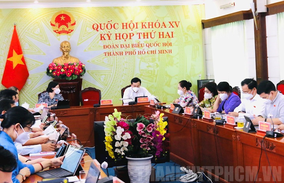 Quang cảnh tại điểm cầu TPHCM(Thanhuytphcm.vn) - Thực hiện Chương trình kỳ họp thứ 2, chiều 28/10, Quốc hội tổ chức thảo luận trực tuyến về dự án Luật Điện ảnh (sửa đổi). Phó Chủ tịch Thường trực Quốc hội Trần Thanh Mẫn điều hành phiên thảo luận trực tuyến.