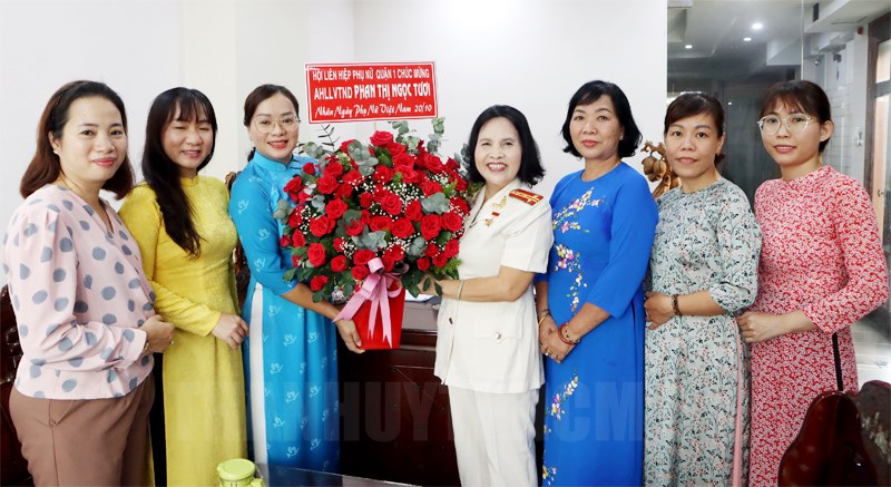 Thăm tặng, quà chúc mừng Anh hùng Lực lượng Vũ trang Nhân dân Phan Thị Ngọc Tươi(Thanhuytphcm.vn) - Ngày 19/10, Chủ tịch Hội LHPN Quận 1 Hoàng Thị Thu Liên dẫn đoàn cán bộ phụ nữ Quận 1 đến thăm, tặng quà chúc mừng Anh hùng Lực lượng Vũ trang Nhân dân Phan Thị Ngọc Tươi, nhân Kỷ niệm 92 năm Ngày thành lập Hội LHPN Việt Nam và Ngày Phụ nữ Việt Nam 20/10.