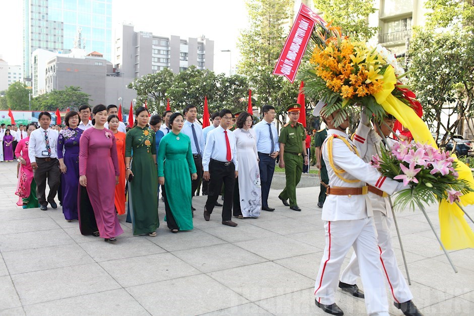 Dâng hoa Tượng đài Bác Hồ(Thanhuytphcm.vn) - Ngày 17/5, nhân kỷ niệm 129 năm Ngày sinh Chủ tịch Hồ Chí Minh (19/5/1890 - 19/5/2019), 108 năm ngày Người ra đi tìm đường cứu nước (5/6/1911 - 5/6/2019), Đoàn đại biểu Quân - Dân - Chính - Đảng Quận 1, 10 phường, Tổng Công ty Bến Thành, Công ty Đầu tư Tài chính nhà nước TPHCM do Thành ủy viên, Bí thư Quận ủy Quận 1 Trần Kim Yến dẫn đầu đã đến dâng hoa Tượng đài Bác Hồ tại Công viên tượng đài Chủ tịch Hồ Chí Minh trước trụ sở UBND thành phố.