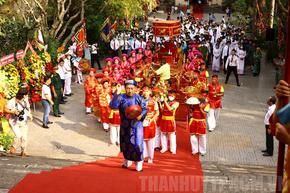 Lễ Giỗ Tổ Hùng Vương được tiến hành với các nghi thức cổ truyền: dâng lễ vật, dâng hoa, dâng hương và tế lễ. Tại buổi lễ, còn có các hoạt động biểu diễn múa Lân - Rồng, trống hội tại khu vực trước sân Đền.