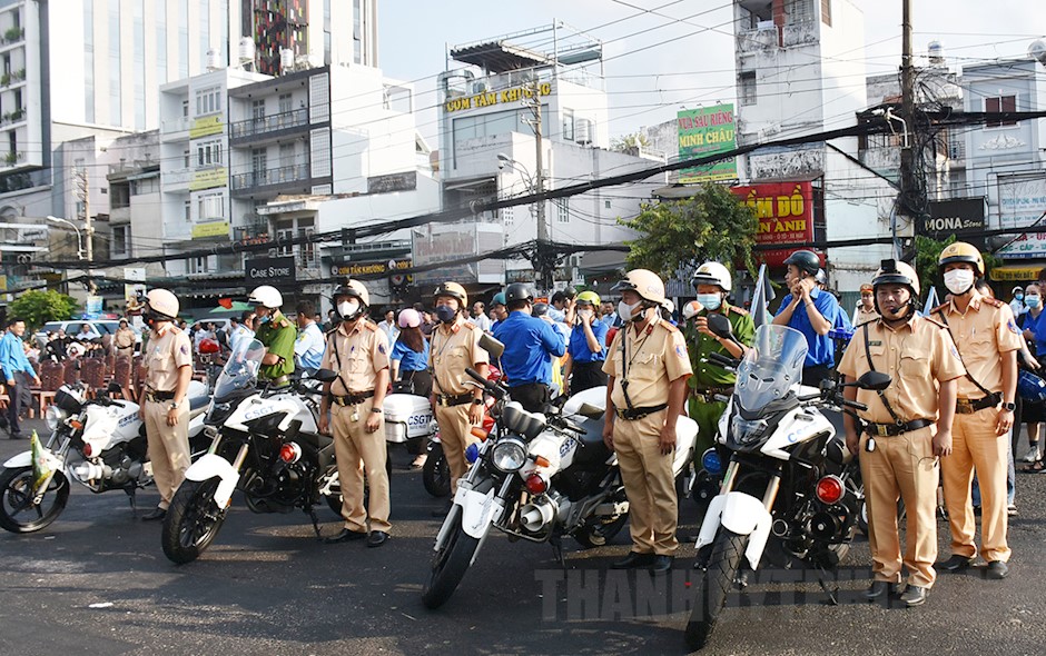 Các lực lượng tham gia bảo đảm trật tự an toàn giao thông của Quận 10 ra quân diễu hành ngay sau buổi lễ(Thanhuytphcm.vn) – Sáng 24/3, Ban An toàn giao thông Quận 10 tổ chức Lễ ra quân thực hiện Năm An toàn giao thông 2024 trên địa bàn quận với chủ đề “Thượng tôn pháp luật để xây dựng văn hóa giao thông an toàn”. Đến dự có đồng chí Lê Văn Minh, Thành ủy viên, Bí thư Quận ủy Quận 10.
