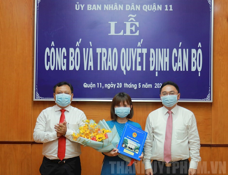 Theo đó, Chủ tịch UBND Quận 11 đã trao Quyết định số 1188/QĐ-UBND ngày 20 tháng 5 năm 2021 của Ủy ban nhân dân Quận về bổ nhiệm bà Lê Thị Phương Thảo, sinh năm 1989, Chuyên viên Văn phòng HĐND và UBND quận giữ chức vụ Phó Chánh Văn phòng HĐND và UBND quận với thời gian bổ nhiệm là 5 năm. Quyết định có hiệu lực kể từ ngày ký.