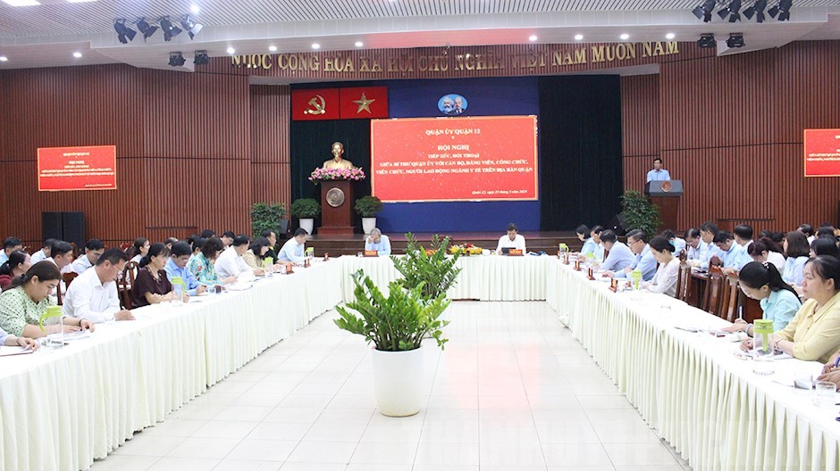 Quang cảnh hội nghị(Thanhuytphcm.vn) - Ngày 29/5, Quận ủy Quận 12 tổ chức Hội nghị tiếp xúc, đối thoại trực tiếp giữa đồng chí Bí thư Quận ủy với cán bộ, đảng viên, viên chức, người lao động ngành Y tế trên địa bàn quận.