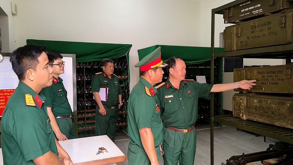 Đại tá Đinh Huy Chung, Phó Tham mưu trưởng Tổng Cục Kỹ thuật Bộ Quốc phòng trực tiếp kiểm tra kho VKTBKT của đơn vị(Thanhuytphcm.vn) - Sáng 3/11, đoàn kiểm tra của Bộ Quốc phòng do Đại tá Đinh Huy Chung, Phó Tham mưu trưởng Tổng Cục Kỹ thuật Bộ Quốc phòng làm trưởng đoàn đã đến kiểm tra nắm tình công tác kỹ thuật tại Ban CHQS Quận 3.