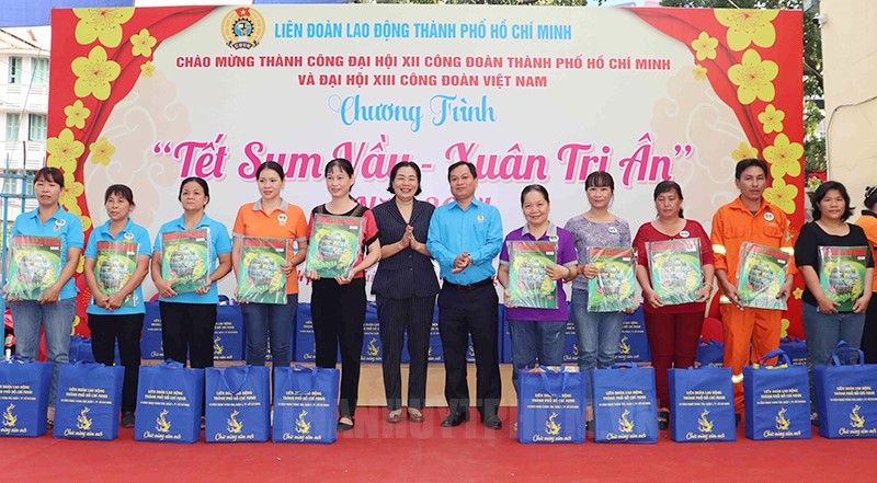 Dịp này, Ban tổ chức trao 234 suất quà Tết của Liên đoàn lao động TPHCM cho đoàn viên, người lao động có hoàn cảnh khó khăn thuộc các cơ quan, đơn vị, doanh nghiệp và 50 suất quà cho đoàn viên các nghiệp đoàn (trị giá từ 700.000 đồng đến 1 triệu đồng/suất bao gồm quà, tiền mặt và phiếu mua hàng tại phiên chợ nghĩa tình. Tổng kinh phí thực hiện là 269 triệu đồng).