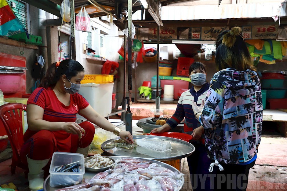 Các gian hàng tại chợ hoạt động luân phiên theo ngày chẵn, lẻKhông chỉ tiểu thương mới vui mừng khi chợ hoạt động trở lại, mà nhiều người dân cũng rất phấn khởi. Bà Đặng Thị Minh Hà, người dân Phường 13, chia sẻ: “Tôi đã gắn bó với chợ này mấy chục năm rồi, ngày nào cũng đến đây mua thực phẩm cho gia đình. Mấy tháng dịch, chợ đóng cửa, tôi chỉ có thể mua thực phẩm tại các siêu thị, cửa hàng thực phẩm nhỏ, các mặt hàng ở đó cũng không phong phú, đa dạng như ở chợ truyền thống. Nghe thông tin hôm nay chợ mở cửa trở lại, tôi mừng lắm, liền đến chợ mua hàng. Khi đến đây, nhân viên Ban Quản lý chợ cũng thường xuyên nhắc nhở chúng tôi thực hiện quy định 5K để phòng dịch”.