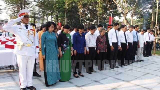 Các đại biểu mặc niệm tưởng nhớ các anh hùng liệt sĩ(Thanhuytphcm.vn) - Nhân kỷ niệm 88 năm Ngày thành lập Đảng Cộng sản Việt Nam (3/2/1930 – 3/2/2018) và 50 năm cuộc Tổng tiến công và nổi dậy Xuân Mậu Thân 1968, sáng 1/2, UBND Quận 4 tổ chức lễ khánh thành công trình di dời Bia Liệt sĩ Tết Mậu Thân Phường 3. Đến dự có các đồng chí: Tô Thị Bích Châu, Chủ tịch Ủy ban MTTQ Việt Nam TPHCM; Trần Hoàng Danh, Bí thư Quận ủy – Chủ tịch HĐND quận; Trần Hoàng Quân, Chủ tịch UBND quận.