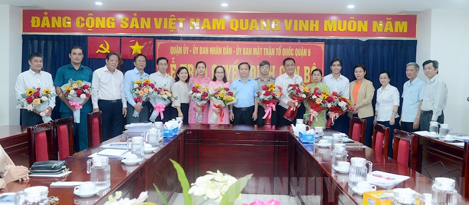 Buổi lễ đã công bố và trao Quyết định cán bộ cho 10 đồng chí. Cụ thể: điều động chỉ định đồng chí Trương Ngọc Phượng – Phó Bí thư Thường trực Đảng ủy Phường 1 tham gia Ban Chấp hành, Ban Thường vụ Đảng bộ Phường 9, giữ chức vụ Phó Bí thư Thường trực Đảng ủy Phường 9. Điều động chỉ định đồng chí Đinh Thanh Sơn – Phó Chủ tịch Ủy ban MTTQ Việt Nam Quận 6 tham gia Ban Chấp hành, Ban Thường vụ Đảng bộ Phường 1, giữ chức vụ Phó Bí thư Đảng ủy Phường 1. Tiếp nhận, điều động, bổ nhiệm đồng chí Hà Thị Xuân Thảo – Phó Chủ tịch UBND Phường 9 giữ chức vụ Phó Chánh Văn phòng Quận ủy. Điều động, bổ nhiệm, chỉ định đồng chí Thái Lê Tuấn – Chỉ huy trưởng Ban CHQS Phường 4 tham gia Ban Chấp hành Đảng bộ Phường 9, giữ chức vụ Phó Chủ tịch UBND Phường 9. Điều động và bổ nhiệm đồng chí Trần Hải Đăng – Phó Chủ tịch UBND Phường 7 giữ chức vụ Phó Trưởng phòng Tư pháp Quận 6. Điều động, bổ nhiệm, chỉ định đồng chí Bùi Đỗ Thị Ngọc Thu – Thanh tra viên Quận 6 tham gia Ban Chấp hành Đảng bộ Phường 7, giữ chức vụ Phó Chủ tịch UBND Phường 7. Điều động, bổ nhiệm, chỉ định đồng chí Phan Thành Nam - Phó Chủ tịch UBND Phường 12 tham gia Ban Chấp hành Đảng bộ Phường 11, giữ chức vụ Phó Chủ tịch UBND Phường 11. Điều động, bổ nhiệm, chỉ định đồng chí Hồ Ngọc Việt - Ủy viên Ủy ban Kiểm tra Quận ủy tham gia Ban Chấp hành Đảng bộ Phường 12, giữ chức vụ Phó Chủ tịch UBND Phường 12. Chỉ định đồng chí Nguyễn Hữu Thành - Chi cục Trưởng chi cục Thi hành án dân sự Quận 6 giữ chức vụ Bí thư Chi bộ Chi cục Thi hành án dân sự Quận 6; chỉ định đồng chí Lê Can Trường - Phó Giám đốc Trung tâm Giáo dục nghề nghiệp – Giáo dục thường xuyên Quận 6 giữ chức vụ Phó Bí thư Chi bộ Trung tâm Giáo dục nghề nghiệp – Giáo dục thường xuyên Quận 6.