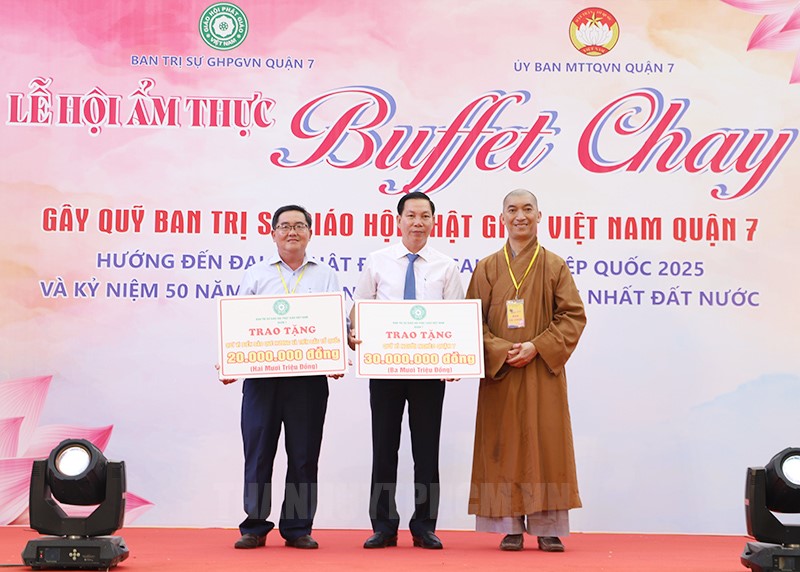 Lễ hội ẩm thực Buffet Chay gây quỹ được tổ chức trong không khí hân hoan đầu Xuân, thu hút hơn 3.000 thực khách, Phật tử trên địa bàn Quận và Thành phố đến ủng hộ. Theo Thượng tọa Thích Hoằng Ninh, Trưởng ban Trị sự GHPG Việt Nam Quận 7, năm 2025 là một năm có nhiều sự kiện trọng đại, thiêng liêng của Phật giáo nói riêng và Tổ quốc nói chung. Vì vậy, chương trình được đề ra như một sự kiện văn hóa tuyên truyền, khích lệ tinh thần ăn chay, lối sống lành mạnh của người dân; gắn kết các Tăng Ni, Phật tử qua các hoạt động tổ chức với tinh thần đoàn kết, hòa hợp, xây dựng một lễ hội truyền thống tốt đẹp gắn liền với ngày trọng đại của đất nước.