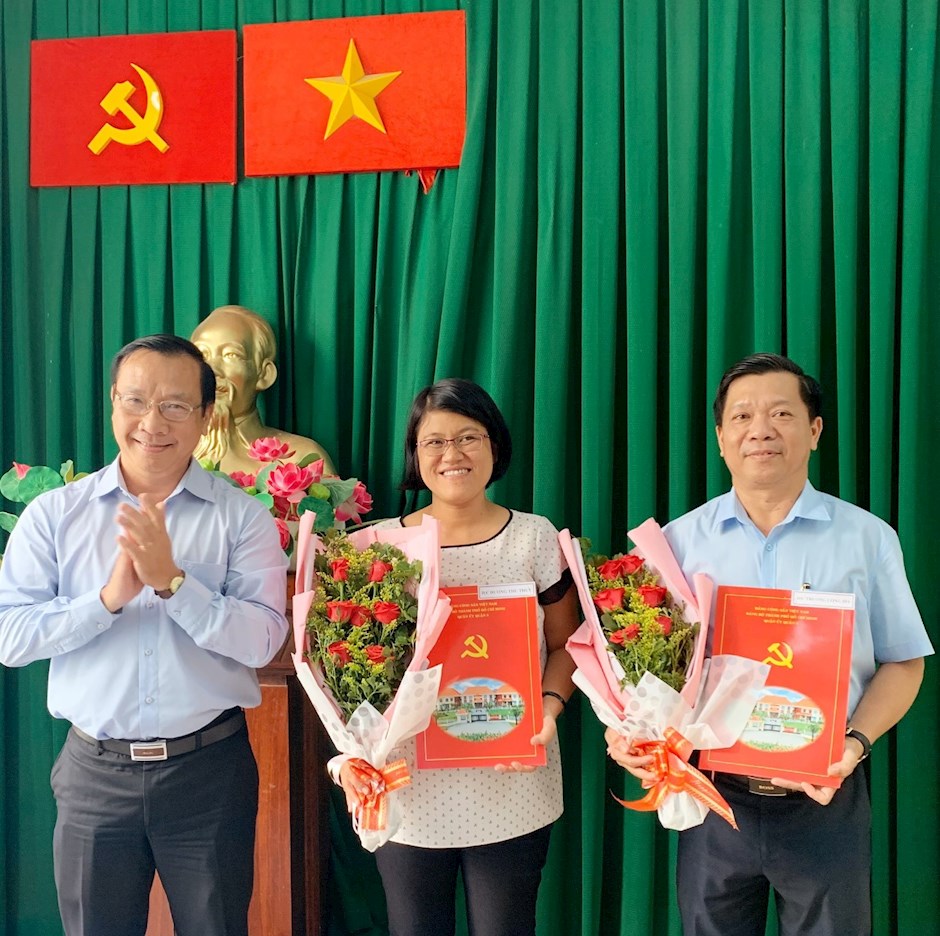 Bí thư Quận ủy Ngô Thành Tuấn trao quyết định điều động cho đồng chí Trương Công Hồ và đồng chí Dương Thu Thủy(Thanhuytphcm.vn) - Chiều 14/10, Quận ủy Quận 8 đã tổ chức công bố Quyết định điều động nhân sự đối với đồng chí Trương Công Hồ, Quận ủy viên, Phó Trưởng ban Thường trực Ban Tuyên giáo Quận ủy đến nhận nhiệm vụ tại Phường 4, Quận 8. Đến tham dự có đồng chí Ngô Thành Tuấn, Bí thư Quận ủy, Chủ tịch Hội đồng nhân dân quận, cùng lãnh đạo Ban Tổ chức Quận ủy; tập thể lãnh đạo và các chuyên viên Ban Tuyên giáo Quận ủy.