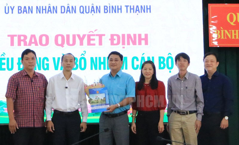 Tại buổi lễ, Thường trực UBND quận đã trao Quyết định điều động đồng chí Nguyễn Văn Quang, Chủ tịch UBND Phường 2 giữ chức vụ Phó Trưởng Ban Bồi thường giải phóng mặt bằng quận Bình Thạnh, thời gian bổ nhiệm 5 năm.