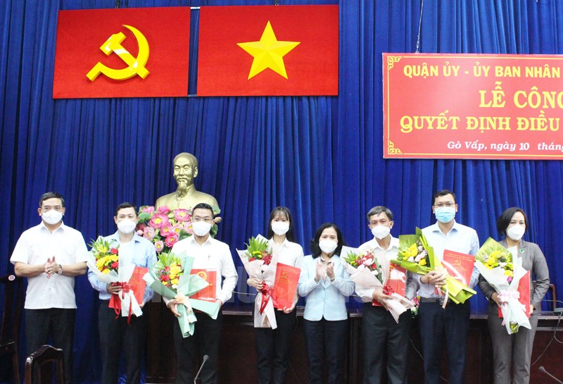 Cũng tại buổi lễ, Phó Chủ tịch UBND quận Đỗ Anh Khang đã trao quyết định của Chủ tịch UBND quận điều động, bổ nhiệm đồng chí Bùi Thị Như Hoa, Phó Bí thư Đảng ủy, Chủ tịch UBND Phường 17 giữ chức vụ Trưởng phòng Kinh tế; điều động, bổ nhiệm đồng chí Bành Văn Trần Vinh, Phó Chủ tịch UBND Phường 8 giữ chức vụ Chủ tịch UBND Phường 17; điều động đồng chí Thái Gia Bảo, công chức Văn phòng UBND quận, nguyên Phó Chủ tịch HĐND Phường 4 giữ chức vụ Phó Chủ tịch UBND Phường 8.