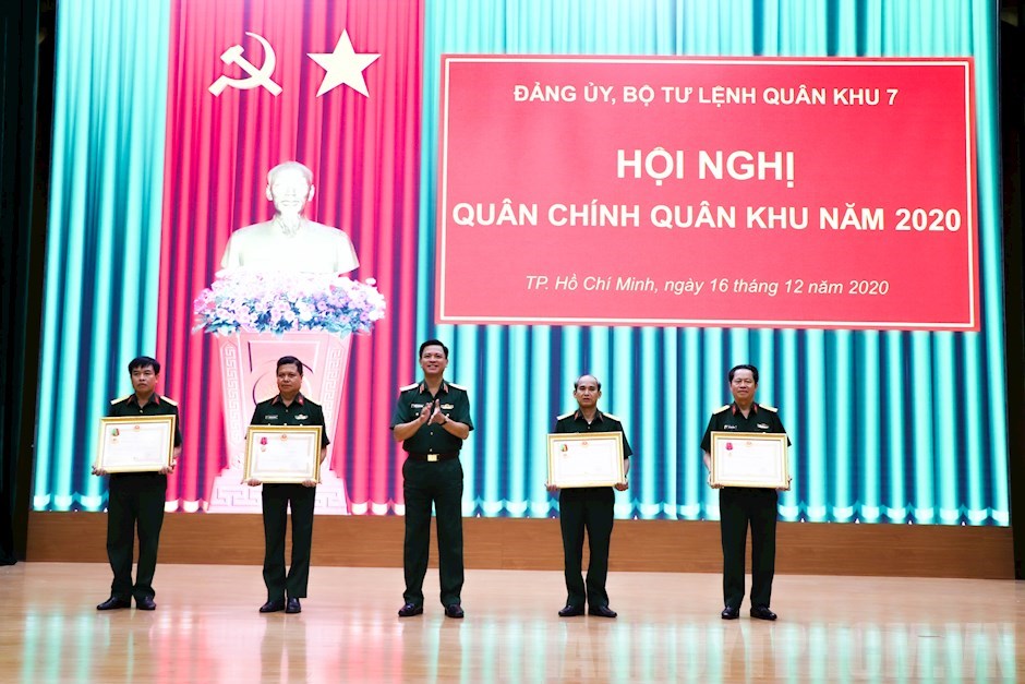 Tặng cờ thi đua Bộ Quốc phòng tặng các tập thể“Thời gian tới, Quân khu 7 cần nắm chắc địa bàn, huy động các nguồn lực để tăng cường hơn nữa tiềm lực quốc phòng trong khu vực phòng thủ, phối hợp với các lực lượng giữ vững an ninh chính trị, trật tự an toàn xã hội, góp phần xây dựng nền quốc phòng toàn dân vững mạnh, khu vực phòng thủ vững chắc, góp phần thúc đẩy phát triển kinh tế - xã hội trên địa bàn.” - Trung tướng Ngô Minh Tiến nhấn mạnh.