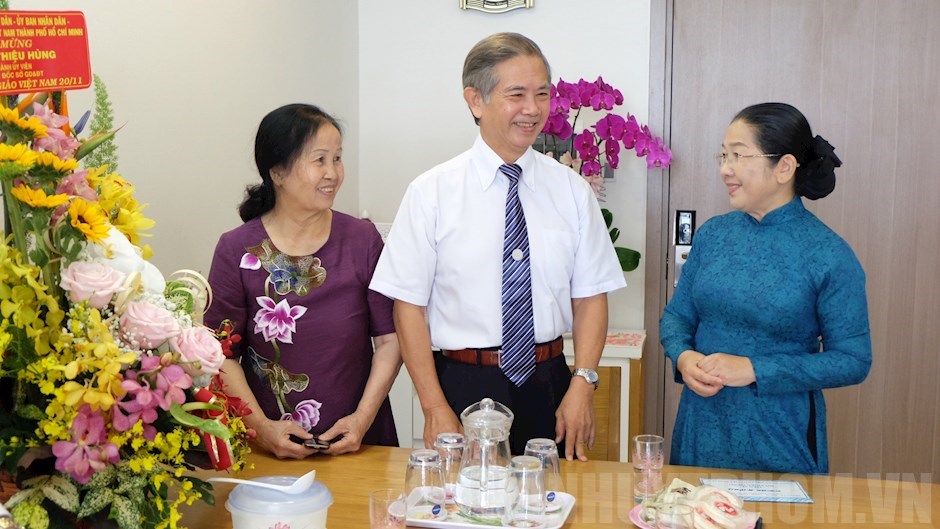 Phó Bí thư Thành ủy TPHCM Võ Thị Dung thăm, chúc mừng Tiến sĩ Hồ Thiệu Hùng. (Ảnh: Hương Thảo)(Thanhuytphcm.vn) - Sáng 15/11, đoàn đại biểu Thành ủy - HĐND - UBND - Ủy ban MTTQ Việt Nam TPHCM do đồng chí Võ Thị Dung, Phó Bí thư Thành ủy làm trưởng đoàn đã đến thăm các nhà giáo tiêu biểu nhân Ngày Nhà giáo Việt Nam 20/11.