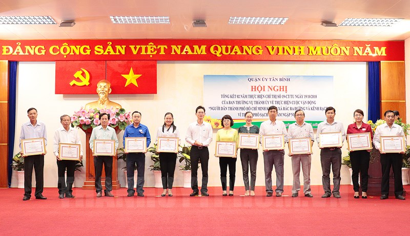 Dịp này, Ban Thường vụ Quận ủy Tân Bình đã trao khen thưởng cho 24 tập thể, 23 cá nhân có thành tích hoàn thành xuất sắc nhiệm vụ qua 2 năm thực hiện Chỉ thị số 19-CT/TU của Ban Thường vụ Thành ủy, trao giấy công nhận cho 14 phường đạt danh hiệu “Phường không xả rác ra đường và kênh rạch”, 1 phường đạt danh hiệu “Phường sạch, xanh và thân thiện môi trường”, 2 công trình, giải pháp, sáng kiến xanh, 92 khu phố đạt danh hiệu “Khu phố sạch, không xả rác ra đường và kênh rạch” và trao giải thưởng cho 6 đơn vị đạt giải sản phẩm thân thiện môi trường trong tổ chức triển lãm hình ảnh và các sản phẩm thân thiện với môi trường.