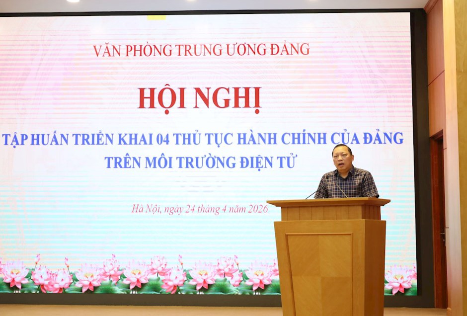 Nội dung tập huấn gồm: Giới thiệu tổng quan về thủ tục hành chính của Đảng; việc thực hiện thủ tục hành chính của Đảng trên môi trường điện tử theo Quy định số 338-QĐ/TW, ngày 09/7/2025 của Ban Bí thư và Hướng dẫn số 42-HD/VPTW, ngày 07/11/2025 của Văn phòng Trung ương Đảng; Trình bày Kế hoạch số 77-KH/VPTW, ngày 11/4/2026 của Văn phòng Trung ương Đảng về triển khai toàn quốc 4 thủ tục hành chính của Đảng trên môi trường điện tử; Giới thiệu tổng thể hệ thống thủ tục hành chính của Đảng trên môi trường điện tử; Hướng dẫn đảng viên nộp hồ sơ 4 thủ tục hành chính trên Cổng giải quyết thủ tục hành chính của Đảng, xử lý quy trình 4 thủ tục hành chính; Hướng dẫn quản trị hệ thống; Hướng dẫn công tác rà soát chuẩn bị theo kịch bản triển khai. Tại hội nghị, các đại biểu trao đổi, giải đáp vướng mắc và hướng dẫn xử lý tình huống phát sinh trong quá trình triển khai.