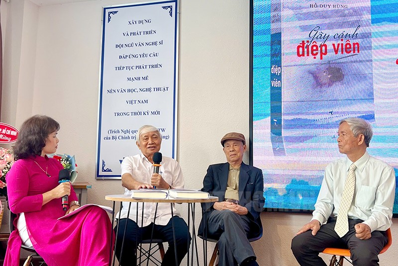 Các khách mời chia sẻ trao đổi về tác phẩm “Gãy cánh điệp viên”(Thanhuytphcm.vn) - Ngày 5/3, Hội nhà văn TPHCM tổ chức lễ ra mắt, tọa đàm và giao lưu tập truyện và ký “Gãy cánh điệp viên” của tác giả Hồ Duy Hùng, nhân kỷ niệm 50 năm Ngày Giải phóng miền Nam, thống nhất đất nước. Cuốn sách là cách tác giả muốn tri ân tới những đồng đội đã hy sinh vì nền độc lập của Tổ quốc ngày hôm nay và cũng là lời gửi gắm cho thế hệ sau cần ghi nhớ về một thời kỳ lịch sử oanh liệt của dân tộc.