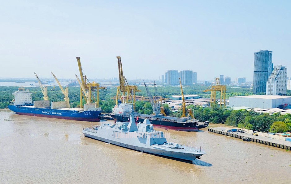 Quang cảnh tàu hộ tống đa nhiệm Provence của Hải quân Pháp cập cảng tại TPHCM(Thanhuytphcm.vn) - Chiều 1/3, tàu hộ tống đa nhiệm Provence của Hải quân Pháp do Chuẩn Đô đốc Jacques Riveire, Phó Tư lệnh các lực lượng Pháp tại Thái Bình Dương làm trưởng đoàn; Đại tá Lionel Seigfried làm Thuyền trưởng cùng 158 sĩ quan, thủy thủ đã cập cảng Lotus, Quận 7, bắt đầu chuyến thăm TPHCM đến hết ngày 7/3.