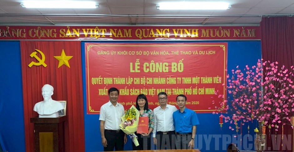 Chi bộ Chi nhánh Công ty TNHH MTV Xuất nhập khẩu sách báo Việt Nam tại TPHCM được thành lập gồm 4 đảng viên trên cơ sở tách ra từ Chi bộ các cơ quan đại diện và doanh nghiệp. Đồng chí Nguyễn Thị Thanh Thủy, Giám đốc Chi nhánh Công ty TNHH MTV Xuất nhập khẩu sách báo Việt Nam tại TPHCM được chỉ định làm Bí thư chi bộ (nhiệm kỳ 2015 – 2020).