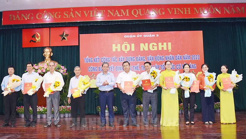Lãnh đạo Quận ủy Quận 3 trao quyết định thành lập các Chi bộ cơ sở trực thuộc Đảng bộ Quận 3(Thanhuytphcm.vn) - Ngày 9/1, Quận ủy Quận 3 đã công bố các quyết định giải thể, thành lập tổ chức cơ sở đảng.