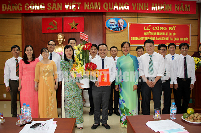 Lễ công bố và trao quyết định thành lập Chi bộ Chi nhánh Văn phòng đăng kí đất đai quận Thủ Đức