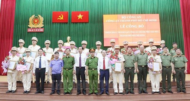 Tại buổi lễ, Thượng tá Huỳnh Tấn Lê, Phó Trưởng phòng Tổ chức cán bộ Công an TP công bố các Quyết định thành lập Công an TP Thủ Đức; các Quyết định của lãnh đạo Bộ Công an, Công an TPHCM về điều động Ban chỉ huy Công an TP Thủ Đức. Theo đó, Ban Chỉ huy Công an TP Thủ Đức gồm có 17 đồng chí (1 trưởng Công an TP và 16 Phó Trưởng Công an TP).