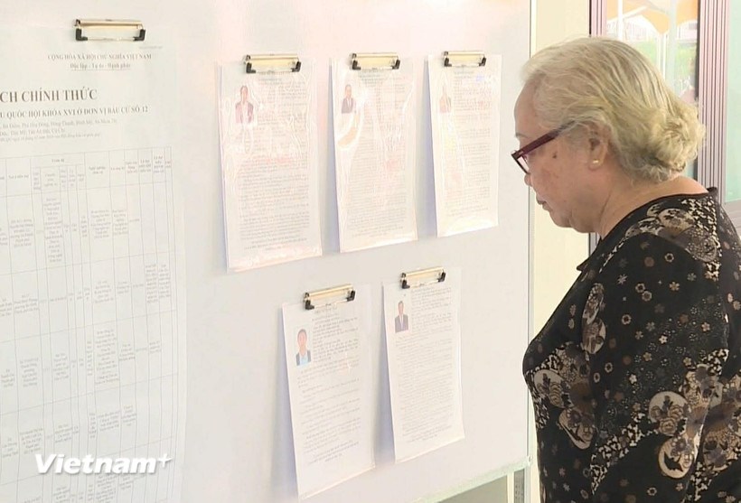 Với quy mô kinh tế và dân số lớn, cử tri Thành phố Hồ Chí Minh hiểu rằng mỗi lá phiếu sẽ góp phần lựa chọn những đại biểu đủ năng lực để điều hành một đô thị đặc biệt. (Ảnh: Hữu Duyên/TTXVN)Cùng với thẻ cử tri, mỗi gia đình còn được phát bộ tài liệu gồm tiểu sử tóm tắt và chương trình hành động của các ứng cử viên đại biểu Quốc hội khóa XVI và đại biểu Hội đồng Nhân dân các cấp.
