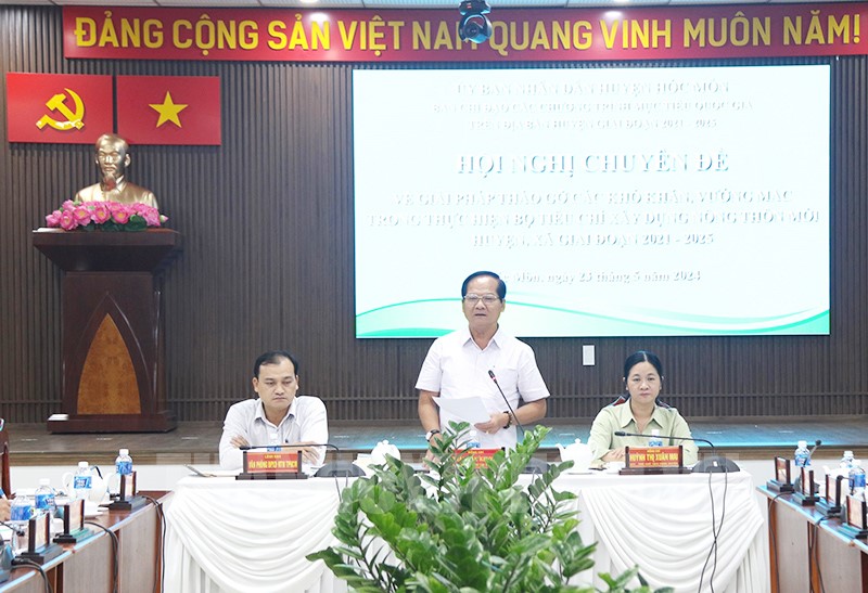 Tại hội nghị, đại diện các phòng ban huyện trình bày khó khăn, vướng mắc trong quá trình thực hiện các tiêu chí gồm: Y tế - Văn hóa - Giáo dục; Kinh tế; Môi trường; Chất lượng môi trường sống. Cụ thể, đất cây xanh sử dụng công cộng tại điểm dân cư nông thôn, huyện Hóc Môn chưa đạt 4m2/người do phần lớn diện tích quy hoạch đô thị. Huyện Hóc Môn không có mô hình tái chế chất thải hữu cơ, phụ phẩm nông nghiệp quy mô cấp xã trở lên…