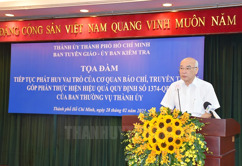 Trưởng Ban Tuyên giáo Thành ủy TPHCM Phan Nguyễn Như Khuê cho biết, tọa đàm “Tiếp tục phát huy vai trò của cơ quan báo chí, truyền thông góp phần thực hiện có hiệu quả Quy định số 1374-QĐ/TU của Ban Thường vụ Thành ủy” nhằm nâng cao chất lượng công tác thông tin tuyên truyền của các cơ quan báo chí, truyền thông góp phần thực hiện có hiệu quả Quy định số 1374-QĐ/TU trong thời gian tới; qua đó, giới thiệu những kinh nghiệm, cách làm hiệu quả, những tồn tại, hạn chế, khó khăn, vướng mắc trong xe xét, giải quyết 4 nguồn thông tin (ý kiến cử tri; hoạt động giám sát của các cơ quan dân cử; thông tin phản ánh, khiếu nại, tố cáo; phản ánh của cơ quan báo chí) Quy định số 1374-QĐ/TU đã nêu ra; Qua đó đúc kết nội dung, phương pháp thực hiện có hiệu quả để triển khai thực hiện trong thời gian tới; đề xuất với cơ quan có thẩm quyền để điều chỉnh, sửa đổi, bổ sung quy định đối với những vấn đề phát sinh trong thực tế.
