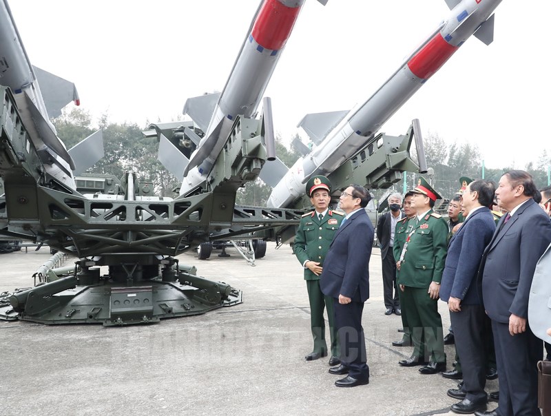 Thủ tướng Phạm Minh Chính và các đại biểu quốc tế tại triển lãm “Các doanh nghiệp quốc phòng trong nước và quốc tế trưng bày và giới thiệu các trang thiết bị quân sự, vũ khí, giải pháp công nghệ cho tất cả các lực lượng hải quân, lục quân, phòng không-không quân, tác chiến không gian mạng, hậu cần, kỹ thuật. Đây là biểu tượng cho lòng tin, mối quan hệ hữu nghị, hợp tác và phát triển; là tình cảm đầy ý nghĩa của bạn bè quốc tế dành cho đất nước, con người và Quân đội Nhân dân Việt Nam anh hùng luôn thể hiện sự chân thành, trách nhiệm với bạn bè quốc tế” - Thủ tướng nhấn mạnh.