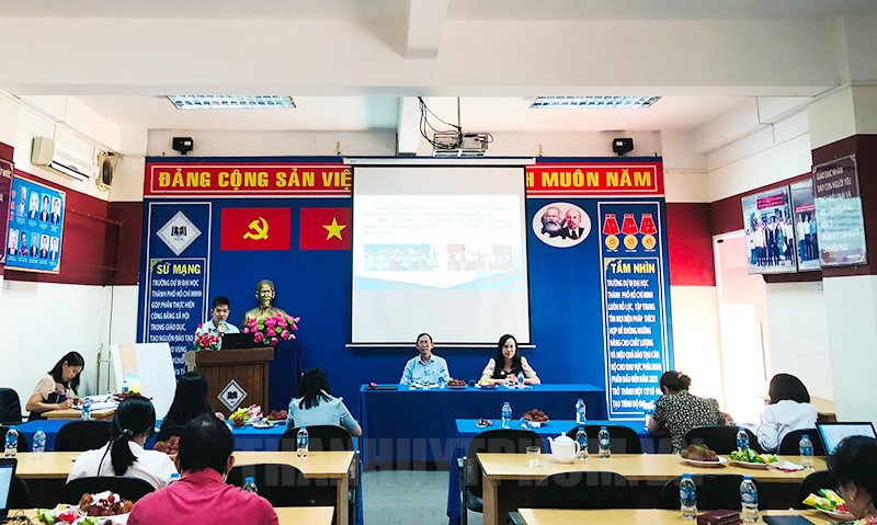 Báo cáo sơ kết, đánh giá giữa nhiệm kỳ 2020 - 2025, đồng chí Nguyễn Thị Minh Thư - Phó Bí thư Đảng ủy, Phó Hiệu trưởng nhà trường cho biết trong bối cảnh còn nhiều khó khăn sau đại dịch Covid-19, Đảng ủy Trường đã đoàn kết, thống nhất lãnh đạo tốt việc thực hiện nhiệm vụ chuyên môn, công tác xây dựng Đảng, lãnh đạo các đoàn thể và đạt được nhiều kết quả khả quan.