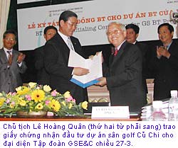 Cũng tại buổi ký kết, Chủ tịch UBND TPHCM Lê Hoàng Quân đã trao giấy phép đầu tư xây dựng dự án sân golf 36 lỗ tại huyện Củ Chi cho GSE & C. Dự án này có diện tích 200ha, với tổng vốn đầu tư 42,6 triệu USD. Thời gian hoạt động của dự án là 50 năm.