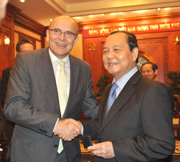 Bí thư Thành ủy TPHCM Lê Thanh Hải đón tiếp ông Erwin Sellering chiều 16-9.(Website TU)- Chiều 16-9, Ủy viên Bộ Chính trị, Bí thư Thành ủy TPHCM Lê Thanh Hải đã tiếp Đoàn đại biểu bang Mecklenburg - Vorpommern, CHLB Đức, do ông Erwin Sellering, Thủ hiến Bang dẫn đầu nhân dịp Đoàn sang thăm và làm việc tại Việt Nam và TPHCM.