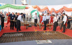 Bí thư Thành ủy TPHCM Lê Thanh Hải (thứ 3 từ phải sang) tham gia đổ bê tông hợp long cầu Phú Mỹ chiều 19-5-2009. (Website TU) – Chiều 19-5, cầu Phú Mỹ - cây cầu dây văng đầu tiên tại TPHCM đã được hợp long nối liền quận 2 và quận 9. Đến dự lễ hợp long có Ủy viên Bộ Chính trị, Bí thư Thành ủy TPHCM Lê Thanh Hải; Bộ trưởng Bộ Xây dựng Nguyễn Hồng Quân; Phó Chủ tịch Thường trực UBND TPHCM Nguyễn Thành Tài và đại diện lãnh sự quán Pháp, Australia, các sở ngành và người dân của quận 2 và 7.