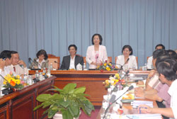 Phát biểu tại buổi làm việc, Phó Bí thư Thành ủy Huỳnh Thị Nhân biểu dương các đơn vị đã vượt qua những khó khăn của cuộc khủng hoảng kinh tế toàn cầu để đạt được những con số ấn tượng trong năm qua. Nhấn mạnh nhiệm vụ trong năm 2009, Phó Bí thư Thành ủy Huỳnh Thị Nhân yêu cầu các đơn vị tài chính TP biết phát huy và khai thác thế mạnh của mình để xây dựng ngành tài chính TP đi đầu trong cả nước; tạo điều kiện thuận lợi nhất để các doanh nghiệp làm ăn, phát triển kinh tế.