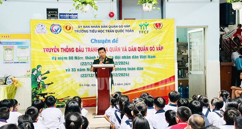 Tại 2 trường Trường Tiểu học Trần Quốc Toản và Võ Thị Sáu, các em học sinh được gặp gỡ, giao lưu với Đại tá, Nhạc sĩ, Nhà báo Đào Văn Sử và đồng chí Vũ Văn Định, Phó Chủ nhiệm CLB Truyền thống kháng chiến quận Gò Vấp; đồng thời, tham quan Triển lãm hình ảnh và trưng bày sách chào mừng 80 năm Ngày thành lập Quân đội Nhân dân Việt Nam (22/12/1944 - 22/12/2024).