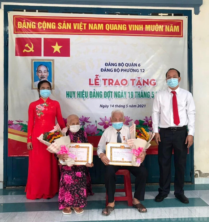 Phó Bí thư Thành ủy TPHCM Nguyễn Hồ Hải và Bí thư Quận ủy Quận 6 Lê Thị Hờ Rin trao Huy hiệu Đảng cho đồng chí Nguyễn Thị Chánh (75 năm tuổi Đảng) và đồng chí Lê Hữu Phương (70 năm tuổi Đảng)(Thanhuytphcm.vn) – Ngày 14/5, Quận 6 tổ chức trao Huy hiệu Đảng tại nhà và các cơ sở Đảng nhân kỷ niệm 131 năm ngày sinh Chủ tịch Hồ Chí Minh (19/05/1980 – 19/5/2021).