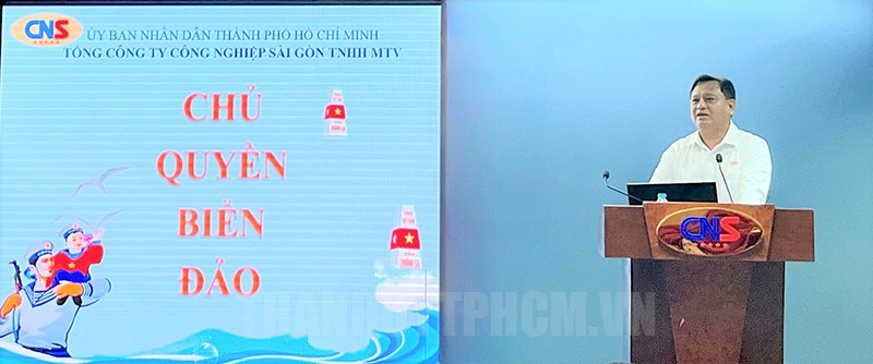 Đồng chí Trần Phi Long chia sẻ thông tin tại buổi sinh hoạt chuyên đề(Thanhuytphcm.vn) - Sáng 8/5, Ban Tuyên giáo Đảng ủy Tổng Công ty Công nghiệp Sài Gòn tổ chức sinh hoạt chuyên đề biển, đảo Việt Nam.