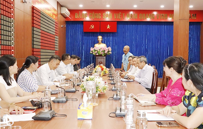 Quang cảnh buổi làm việc(Thanhuytphcm.vn) - Chiều 11/10, đoàn công tác TP Thủ Đức do đồng chí Trần Hữu Phước, Ủy viên Ban Thường vụ Thành ủy, Chủ tịch Ủy ban MTTQ Việt Nam TP Thủ Đức làm trưởng đoàn có buổi thăm và làm việc, tìm hiểu cơ hội hợp tác với Đài tiếng nói Nhân dân TPHCM (VOH).