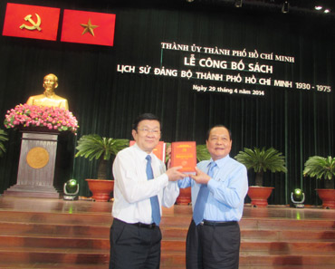 (Website TU)– Sáng 29/4, Thành ủy TPHCM đã tổ chức lễ công bố sách “Lịch sử Đảng bộ Thành phố Hồ Chí Minh 1930 - 1975”. Tham dự buổi lễ có đồng chí Trương Tấn Sang, Ủy viên Bộ Chính trị, Chủ tịch nước; Lê Thanh Hải, Ủy viên Bộ Chính trị, Bí thư Thành ủy TPHCM; các đồng chí nguyên là lãnh đạo Đảng, Nhà nước; các đồng chí lão thành cách mạng, cán bộ cao cấp nghỉ hưu; các đồng chí trong Ban Thường vụ Thành ủy, Thành ủy viên các khóa; các đồng chí trong Ban Chỉ đạo và Biên soạn sách “Lịch sử Đảng bộ Thành phố Hồ Chí Minh 1930 - 1975” cùng đông đảo đoàn viên thanh niên TP.