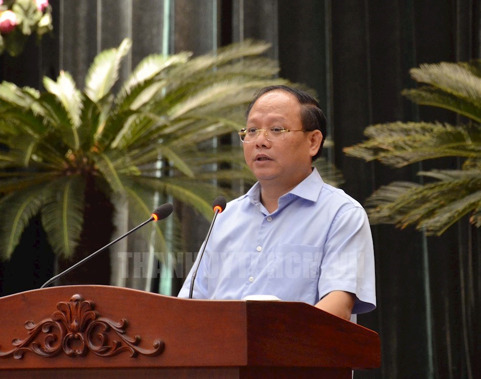 Phó Bí thư Thường trực Thành ủy TPHCM Tất Thành Cang phát triển tại hội nghị.