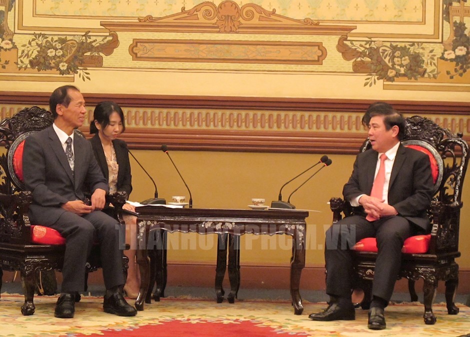 Chủ tịch UBND TPHCM Nguyễn Thành Phong (bìa phải) tiếp Tỉnh trưởng tỉnh Gangwon (Hàn Quốc) Choi Moonsoon.(Thanhuytphcm.vn)