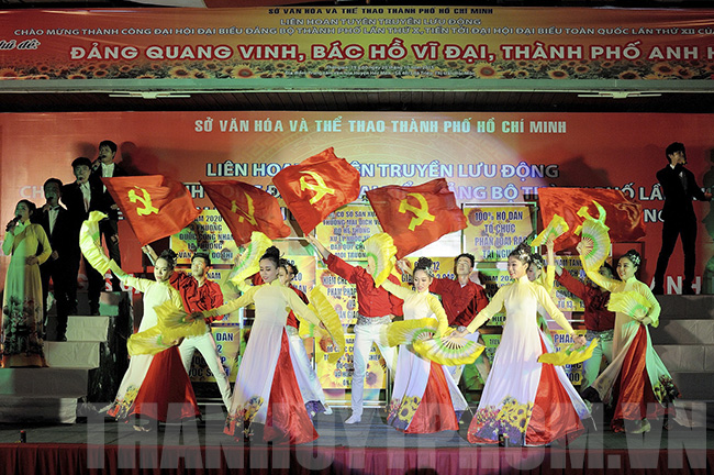Một tiết mục dự Liên hoan.(Thanhuytphcm.vn) - Ngày 8/1, tại Trung tâm Văn hóa TPHCM, Sở Văn hóa - Thể thao TPHCM đã tổ chức tổng kết và trao giải Liên hoan Tuyên truyền lưu động chào mừng thành công Đại hội Đại biểu Đảng bộ TPHCM lần thứ X, tiến tới Đại hội Đại biểu toàn quốc lần thứ XII của Đảng.